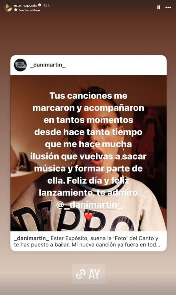 Ester Expósito reacciona a la canción que le ha dedicado Dani Martín.