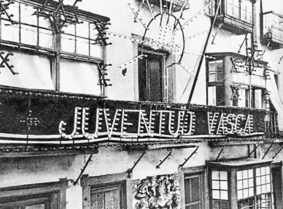 Juventud Vasca de Bilbao (en la imagen fachada de la sede en la calle Bidebarrieta). La primera organización externa al propio partido nacionalista vasco que sirvió de plataforma y apoyo para la constitución de otras organizaciones juveniles para revitalizar la vida social, deportiva y cultural vasca. Todos los detalles con el historiador de SAF, Luis de Guezala.