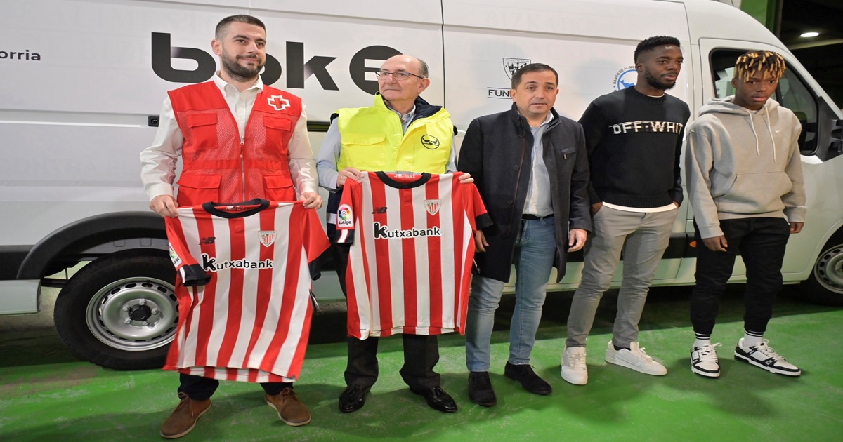 Se trata de una iniciativa de BBK en colaboración con el Banco de Alimentos de Bizkaia y Cruz Roja, a la que también ha querido sumarse Athletic Fundazioa con la donación de seis camisetas al Banco de Alimentos y Cruz Roja.