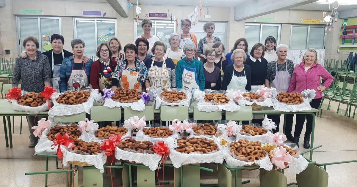 La Asociación de Mujeres de Burlada prepara desde hace más de treinta años las tradicionales rosquillas para el día de San Blas, más de 120 kilos que reparten entre los vecinos y vecinas del municipio tras la misa que se celebra es viernes en honor al santo. Un dulce típico bendecido en la parroquia y que las voluntarias elaboran de víspera y con todo mimo en el colegio Hilarión Eslava. La asociación que dirige María Luisa Orduña cuenta con un centenar de mujeres que se reúne todos los martes en la Casa de Cultura de la localidad, un colectivo que se mantiene muy activo después de la pandemia.