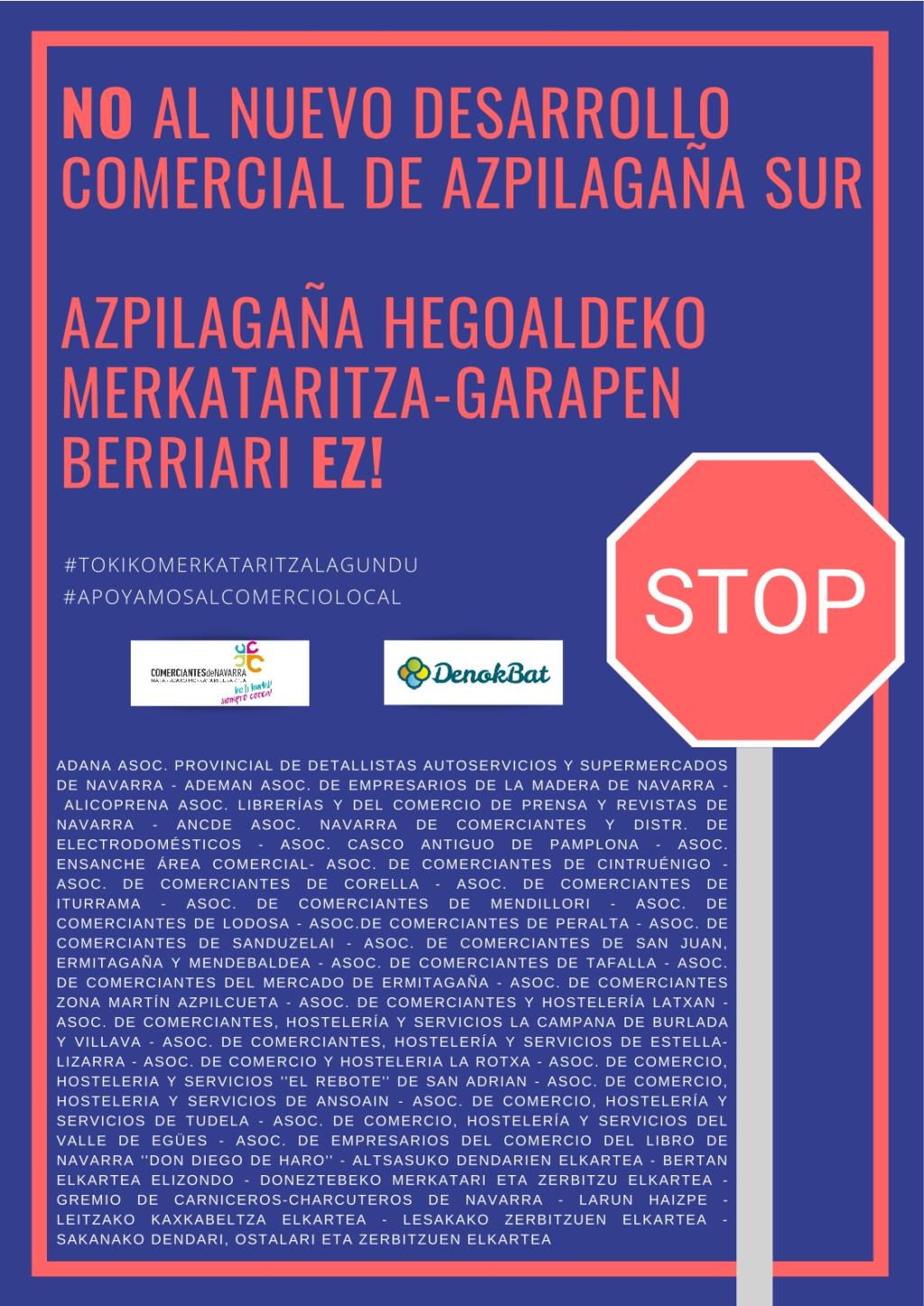 "La Asociación de comerciantes de Navarra, Federación de Asociaciones Denok Bat y los más de 2.300 establecimientos a los que representamos, tenemos razones de peso y razones suficientes para decir 'no' al nuevo desarrollo comercial de Azpilagaña Sur".