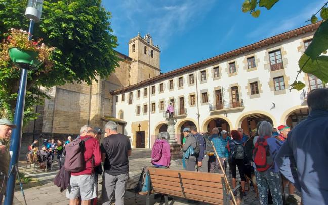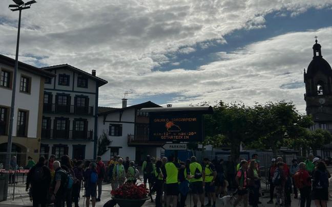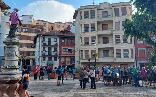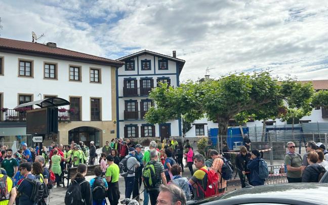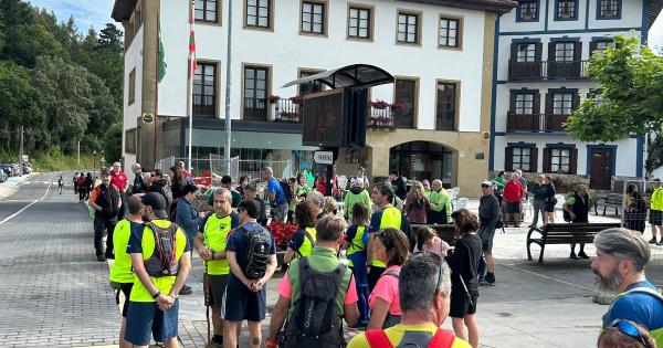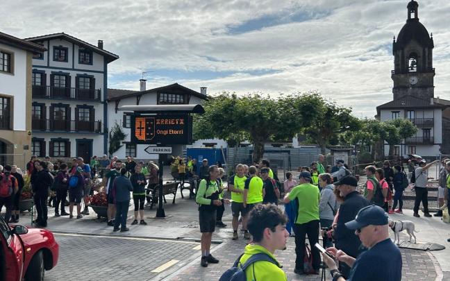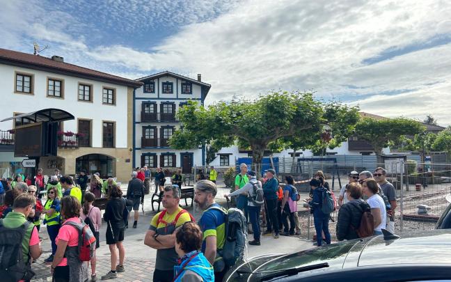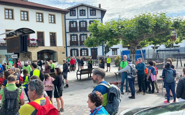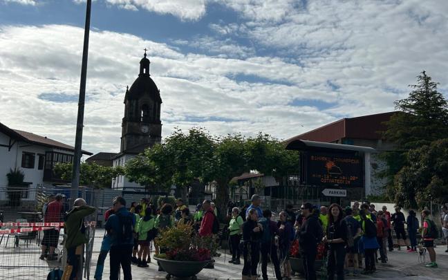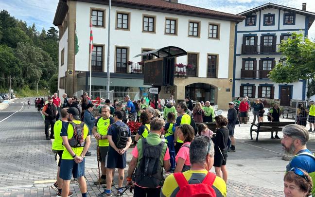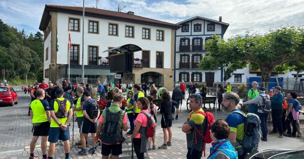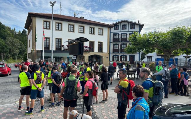 Pronto por la mañana, a las 9.00 horas concretamente, decenas de personas se han reunido en Bermeo para salir hacia la cumbre del monte Sollube por los Montes Bocineros.