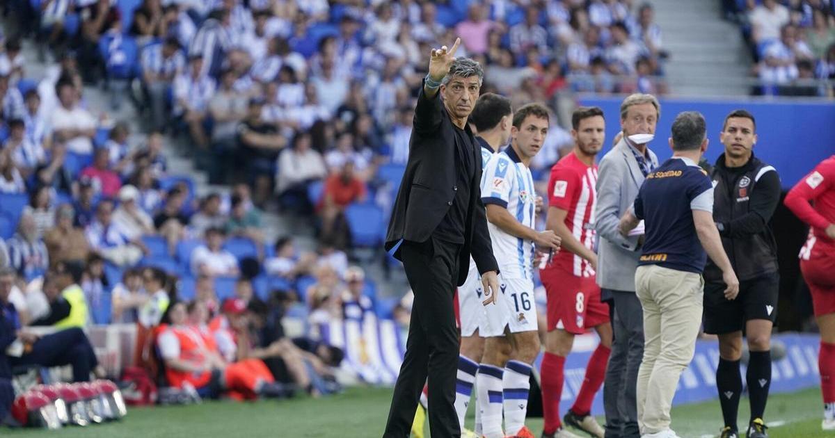Imanol, dando instrucciones durante el partido de este sábado contra el Atlético de Madrid. / RUBEN PLAZA