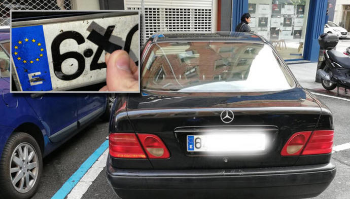 En Pamplona, Policía Municipal tuvo que retirar este coche, que además de haber aparcado en un estacionamiento para personas con movilidad reducida, había alterado su matrícula.