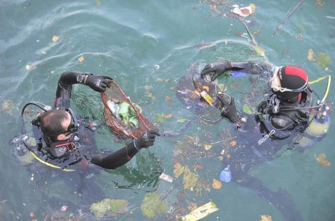Buceadores de la Asociación Marefondum y los Clubs de Buceo Divertek e Itxas-Dive han extraído en Getxo y Zierbena 320 kilos de residuos marinos durante este fin de semana.
