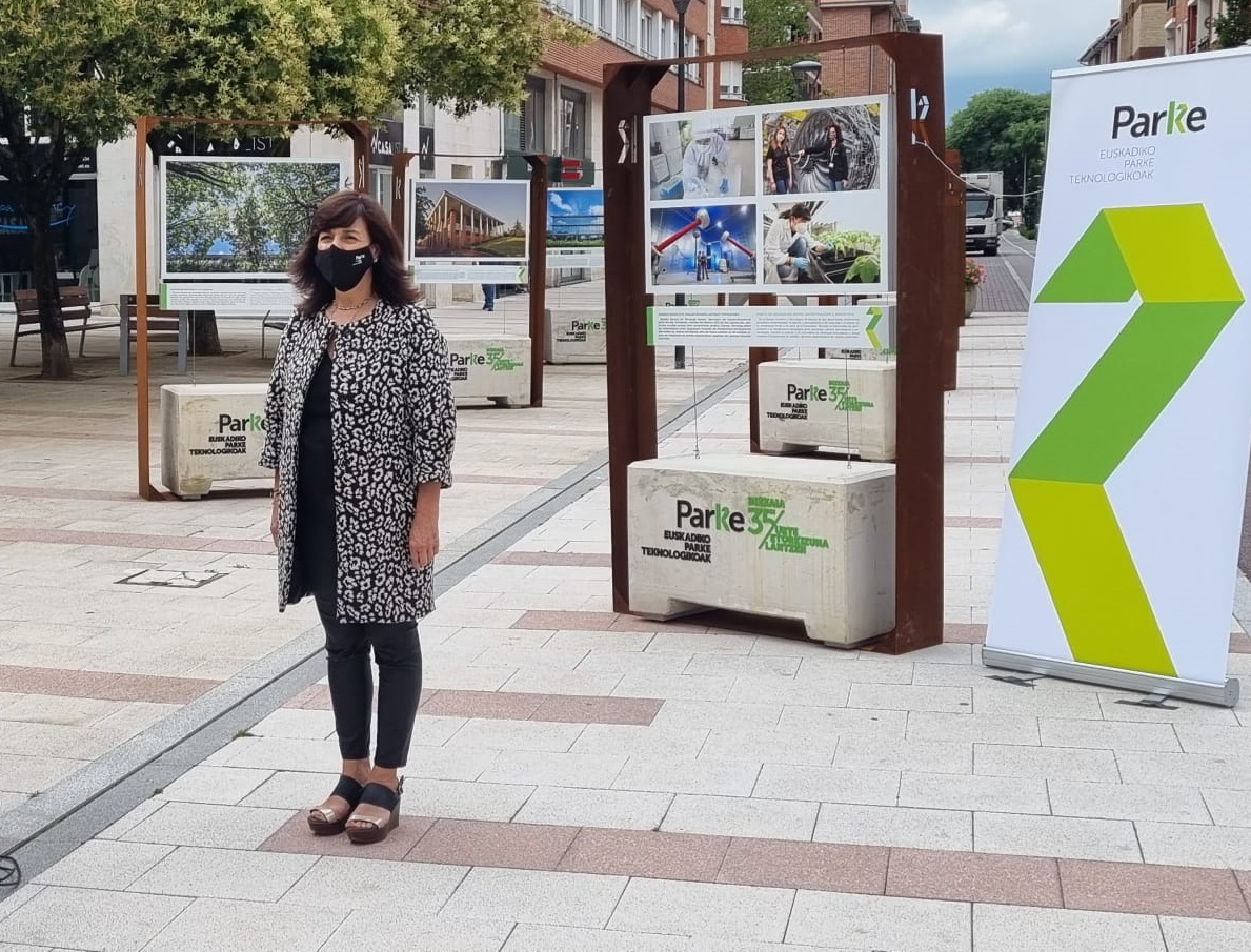 La directora de la Red de Parques Tecnológicos de Euskadi, Itziar Epalza, nos presenta la exposición 'Descubre el lugar donde se crea nuestro futuro', que conmemora el 35 aniversario del Parque Científico y Tecnológico de Bizkaia