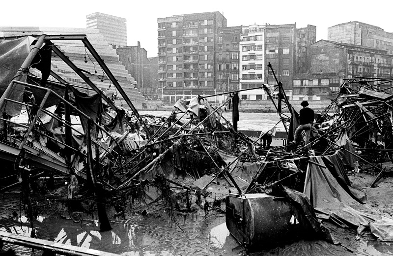 Tal día como hoy, hace 40 años, Bilbao contemplaba cómo la lluvia arrasaba con la ciudad, que estaba disfrutando de su Aste Nagusia, al igual que producía importantes destrozos en otros puntos de Euskadi, llegándose a anegar un centenar de localidades vascas (fotos: Angel Ruiz de Azua)