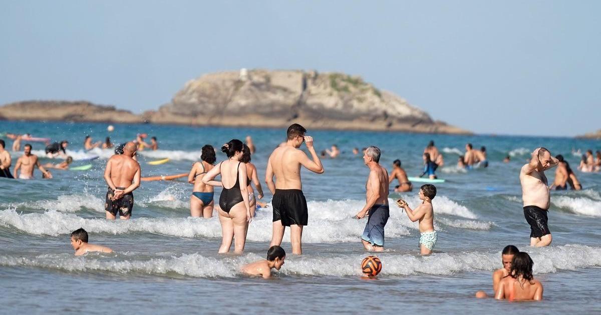 Personas bañándose en la playa de Zarautz este verano. / Ruben Plaza