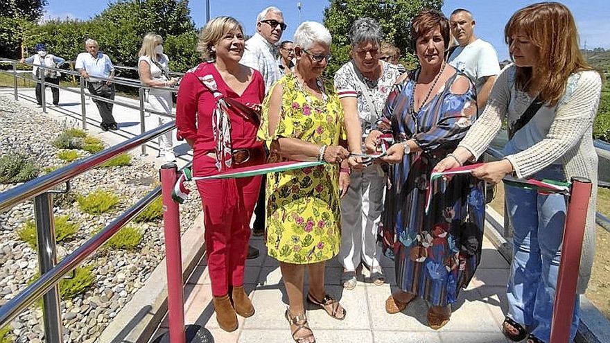 Los vecinos de Sanfuentes dieron ayer jueves a la bienvenida oficial a la nueva rampa peatonal entre la zona del frontón, el barrio Santa Bárbara y el hogar de Mayores que mejora la accesibilidad de la zona para la ciudadanía con movilidad reducida especialmente pero también para vecinos y vecinas con carritos de compra o de bebés. “Esta nueva rampa ayuda y mucho a Sanfuentes, gana en accesibilidad, en comodidad, ya que conecta el centro con el barrio de Santa Bárbara pero sobre todo con el hogar de jubilados, muy frecuentado por las personas mayores de la zona. Con esta rampa hemos dado una respuesta eficaz a una demanda vecinal muy antigua que hoy es una realidad”, explicó la alcaldesa, Maite Etxebarria, momentos antes de cortar la cinta inaugural de esta infraestructura que ha supuesto una inversión de 180.000 euros.