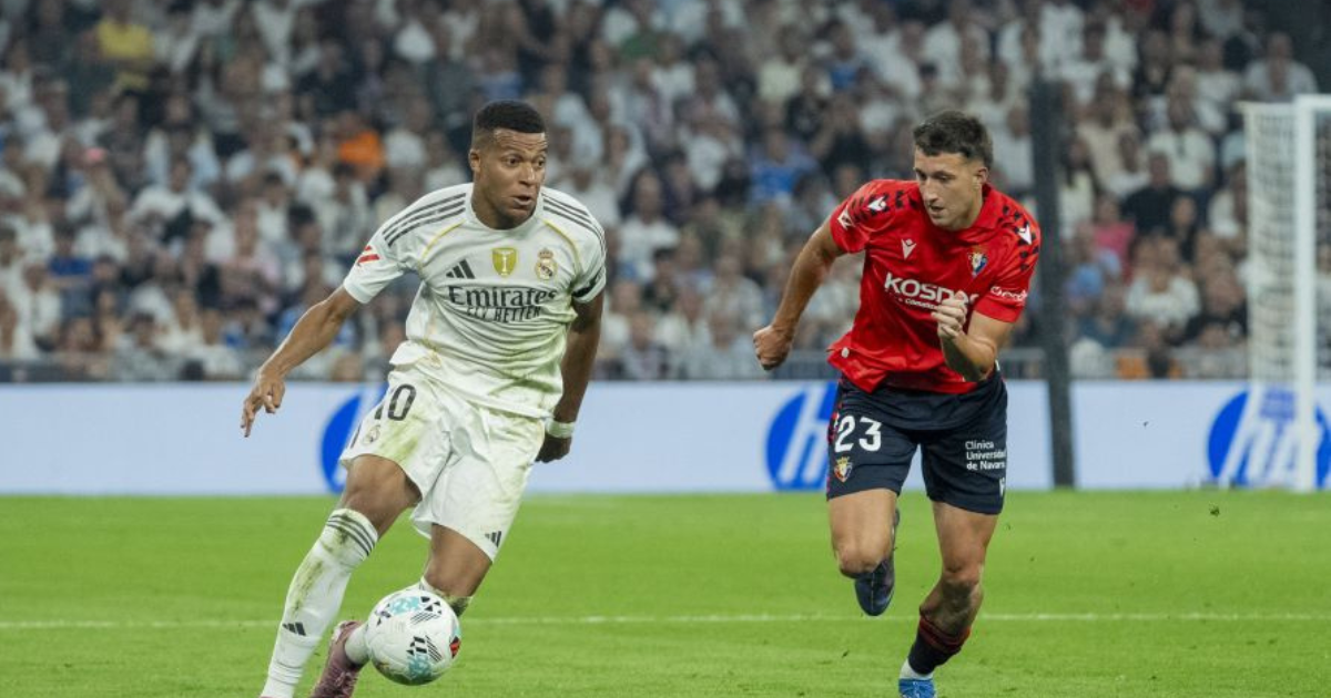 Abel Bretones disputando un balón con Kylian Mbappé en el duelo del Santiago Bernabéu de la jornada 1. Foto: LaLiga