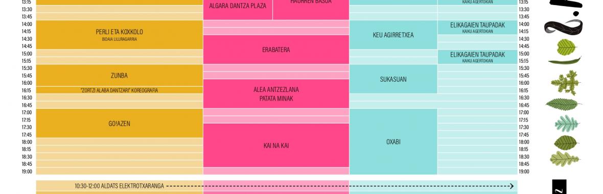 También habrá zumba y una actuación de Perli eta Koxkolo. Además, en este espacio también se situarán la escuela de alimentación de Eroski, la pista ciclista de Euskaltel y los hinchables.