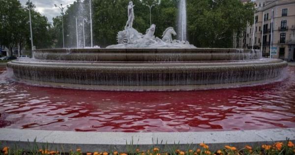 Activistas de Greenpeace han teñido de rojo el agua de la fuente de Neptuno, en Madrid, para pedir un embargo de armas a Israel, en una acción previa a la manifestación estatal de este sábado que discurrirá al mediodía desde Atocha a la Puerta del Sol en solidaridad con el pueblo palestino. Con esta acción, en la que Greenpeace ha usado tinte biodegradable de color sangre para denunciar el genocidio en Gaza, la organización ecologista busca condenar la adjudicación por el Gobierno español de 46 contratos a la industria militar israelí, por más de 1.000 millones de euros, desde que estalló el conflicto en octubre de 2023.