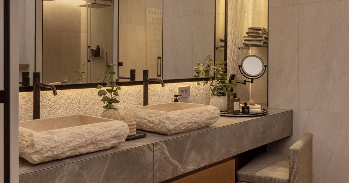 Por último, para baños especialmente amplios para compartir en familia, la opción de una encimera con doble seno resulta muy cómoda y hará que este tipo de lavabos destaquen de forma especial en la decoración, convirtiendo al baño en un lugar destacado de la casa. Quien tenga pensada hacer una reforma y quiera optar por esta tendencia que aúna naturaleza y lujo, puede recurrir tanto a firmas prestigiosas de diseño, como a tiendas más asequibles y aptas para todos los bolsillos.