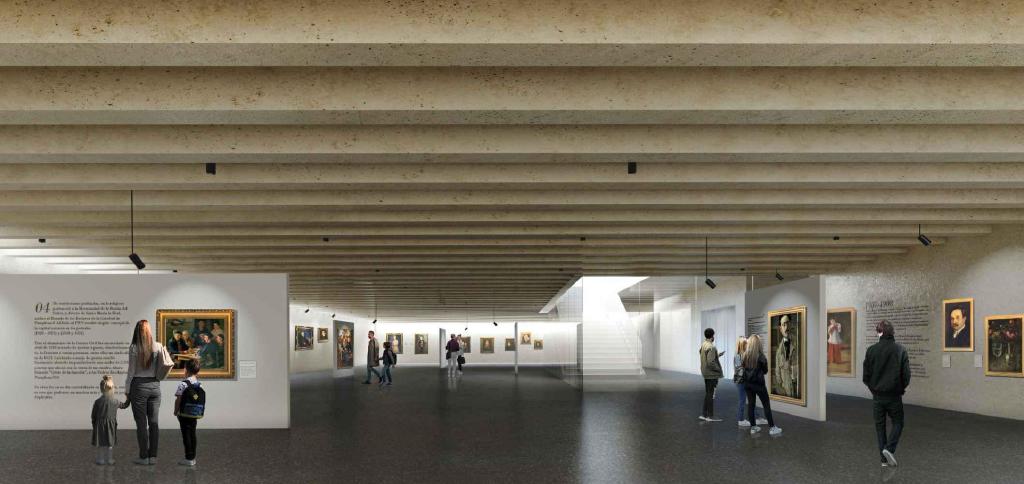 Un edificio que asume como propia la piedra, material predominante en el resto de construcciones previstas a su alrededor. Entre sus dependencias, contará con un auditorio con 402 butacas en la planta baja, con las salas dedicadas al pintor Javier Ciga y al músico Pablo Sarasate en el sótano y con aulas específicas en las plantas altas.