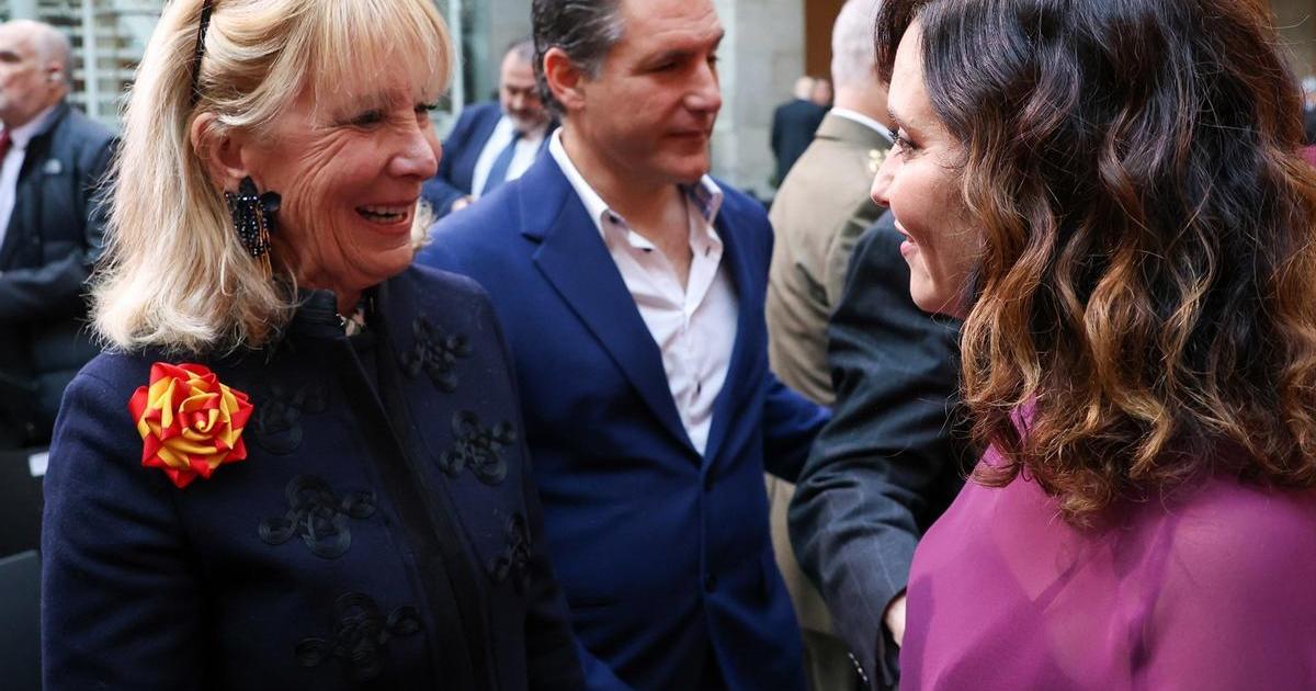 La presidenta de la Comunidad de Madrid, Isabel Díaz Ayuso (d), saluda a la expresidenta de la Comunidad de Madrid Esperanza Aguirre. / EP
