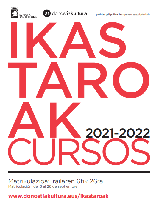 Jon Aizpuruak, Donostiako Kulturako Kultur Ekintzako arduradunak, Gipuzkoako Kale Nagusian 2021-22 kurtsorako formakuntza eskaintzari buruz hitz egin digu. Diziplina askotako 508 kurtso egongo dira eta horietan ikasi ez ezik harremanak ere sortzen dira. Matrikulazio epea irailaren 6tik 26ra egongo da irekita.