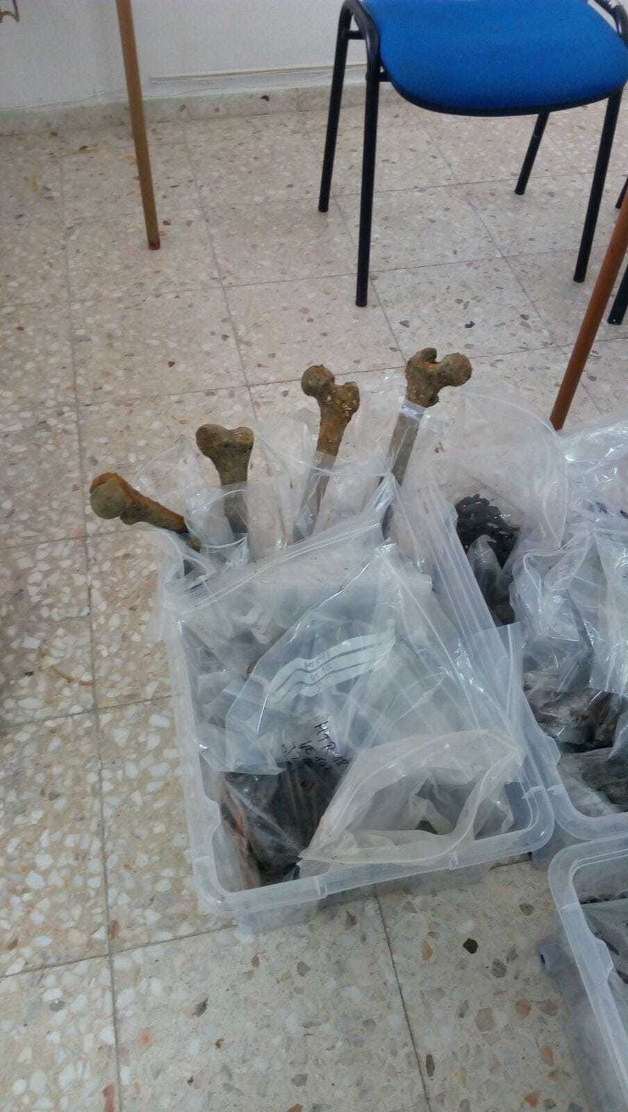 Los primeros restos humanos que confirmaban la presencia de los cuerpos en el interior del pozo aparecieron a 25 metros de profundidad, donde la superficie del pozo se reducía significativamente y media 2,5 metros de largo por 1,5 metros de ancho.