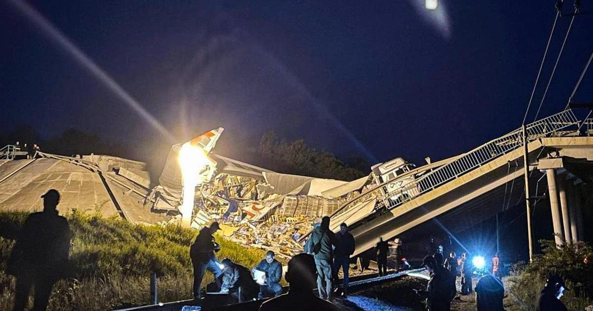 Informes preliminares recogidos por los medios nacionales explican que el puente se derrumbó sobre un tren de pasajeros que pasaba por debajo en ese mismo instante y sobre el que cayeron los escombros causando daños en la locomotora y en varios vagones del tren, algunos de los cuales descarrilaron.