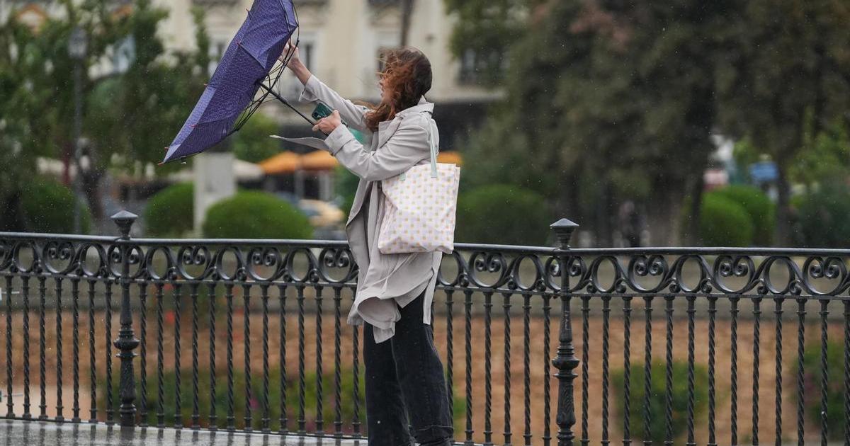 Una mujer trata de refugiarse de la lluvia. / E.P.