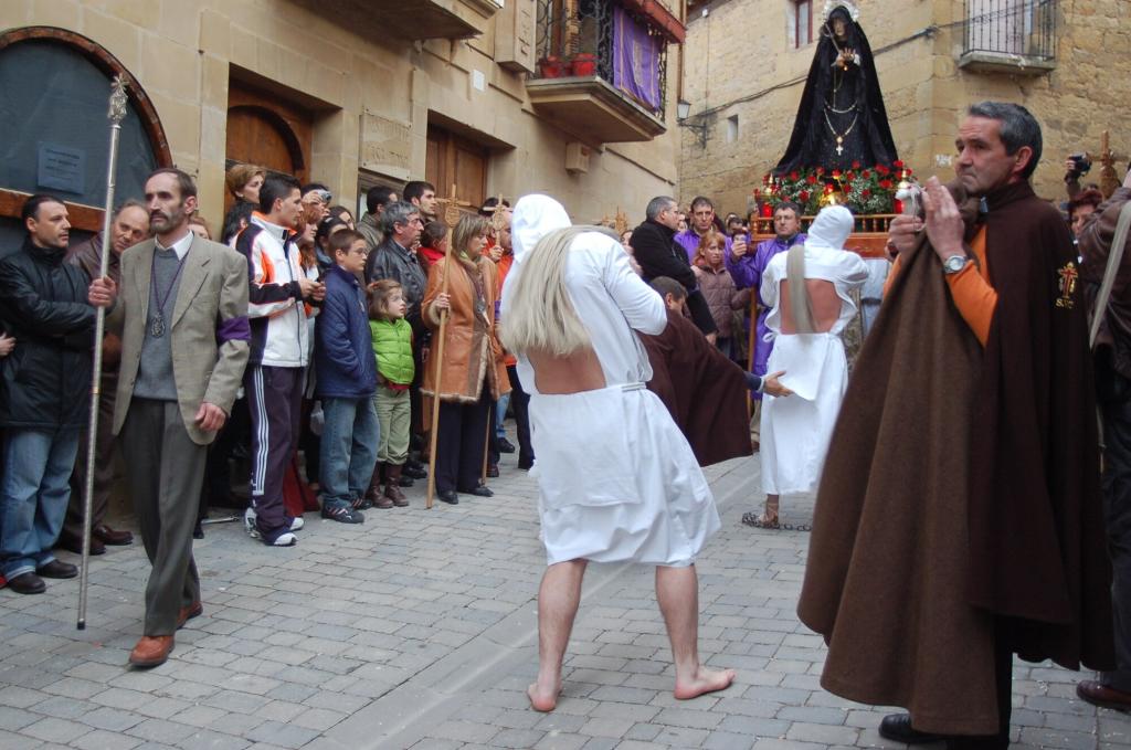 Los inquietantes picaos o disciplinantes de la Sonsierra riojana recorrieron ayer las calles de la villa y también hoy Viernes Santo, manifestando su penitencia con golpes de un mazo de tersas cuerdas de algodón y aliviando el dolor dejándose picar la espalda con una torta de cera armada de afilados cristales.