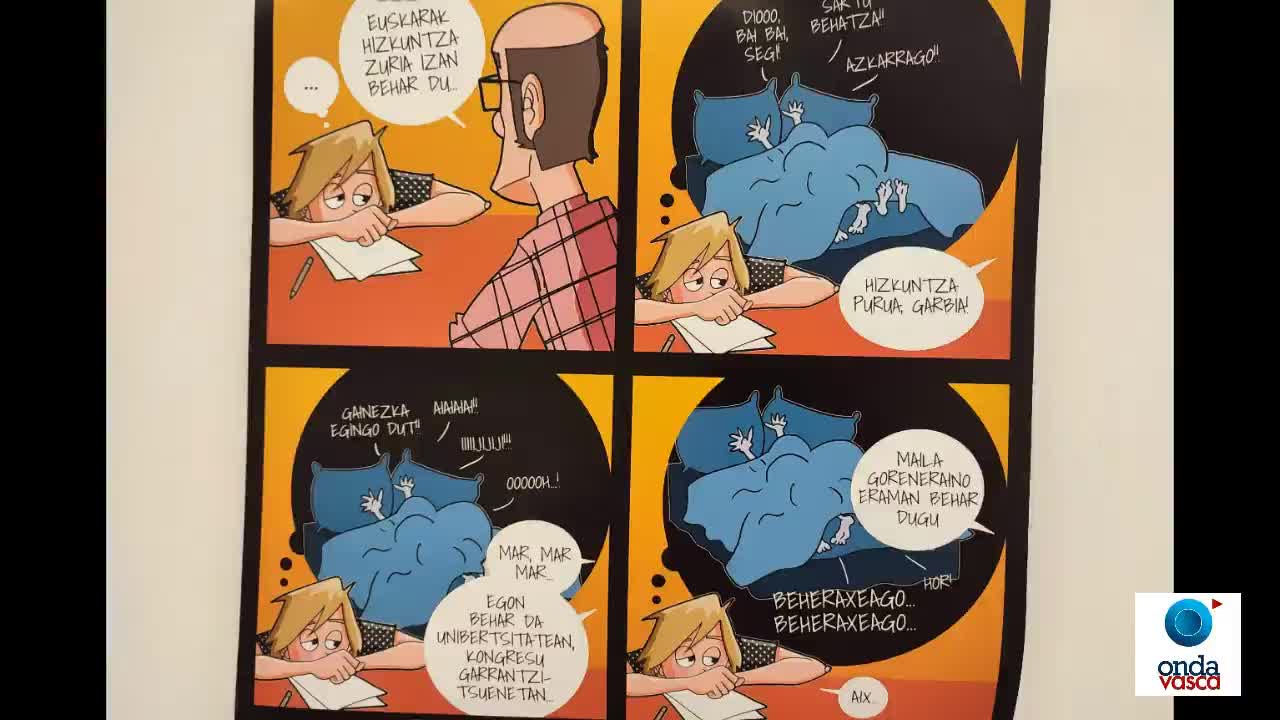 'Alde edo alde' erakusketak, umorea eta kritika erabiliz, euskararen gaineko diskurtsoen inguruan gogoeta sustatu nahi du. Donostian dago ikusgai, Euskal Herriko Unibertsitateko Carlos Santamaría eraikinean.