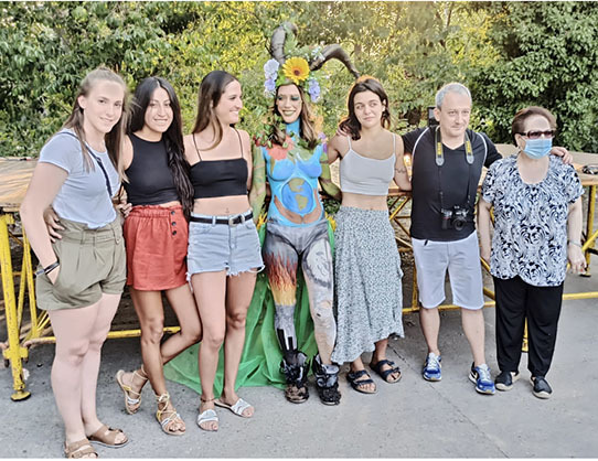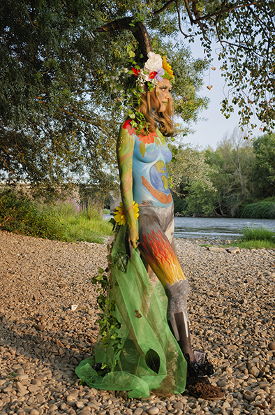 El cuerpo humano como un lienzo en el que reivindicar, sensibilizar y concienciar acerca de la importancia de preservar el entorno y el medio ambiente. Este es el reto que se marcaron los lodosanos Maite bravo, que vive y trabaja en Cambridge en un colegio de Educación Especial y David Encina, peluquero en la localidad ribera, y para lo que impulsaron una performance y una jornada de movilización ciudadana que culminó con un body painting a cuerpo entero que dejó a todos boquiabiertos.