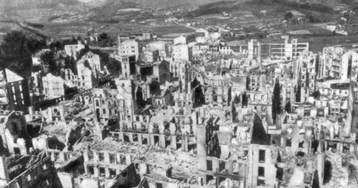 El centro de Gernika quedó totalmente destruido por el bombardeo durante cuatro horas de los aviones alemanes e italianos, con el beneplácito de Franco