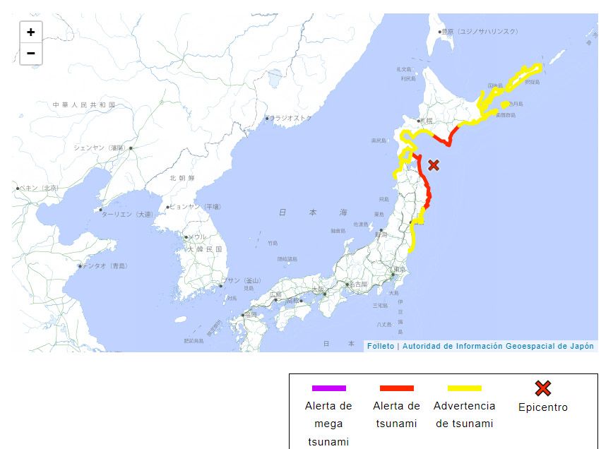 La JMA activó una alerta de tsunami de hasta 3 metros de altura para las costas de la prefectura de Aomori, la vecina Iwate y la punta sur de la isla de Hokkaido, la más septentrional del archipiélago, que se prevé que llegue pasada la medianoche local.