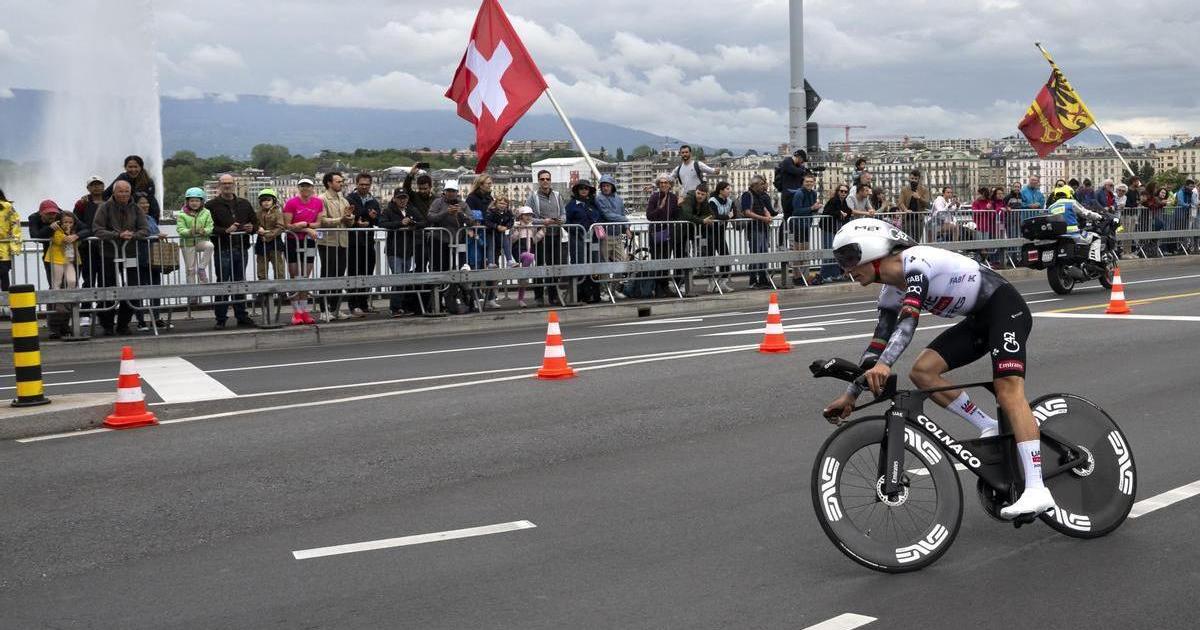 Dorada la bici, arcoíris el maillot, y de color oro el casco, brilló más que nadie en los 17 kilómetros de contrarreloj, con una pequeña chepa y el lago Lemán como testigos de la clausura de la prueba helvética, que comenzó con un prólogo a modo de yincana y finalizó con una crono con el peso suficiente para promover en el trono a Joao Almeida.