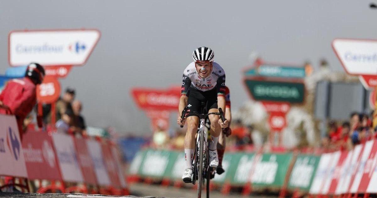 Empatados en la cima, emparejados en cada palmo del Angliru, la Vuelta es una asunto de dos, un debate en la intimidad. Vingegaard y Almeida se aislaron del resto. Pidcock, que asomó la cresta en Pike Bidea, claudicó. El coloso asturiano le sometió la alegría. Se empuñó la carrera, que cada dos días cuenta una victoria del implacable UAE. Suma seis. Otro laurel.