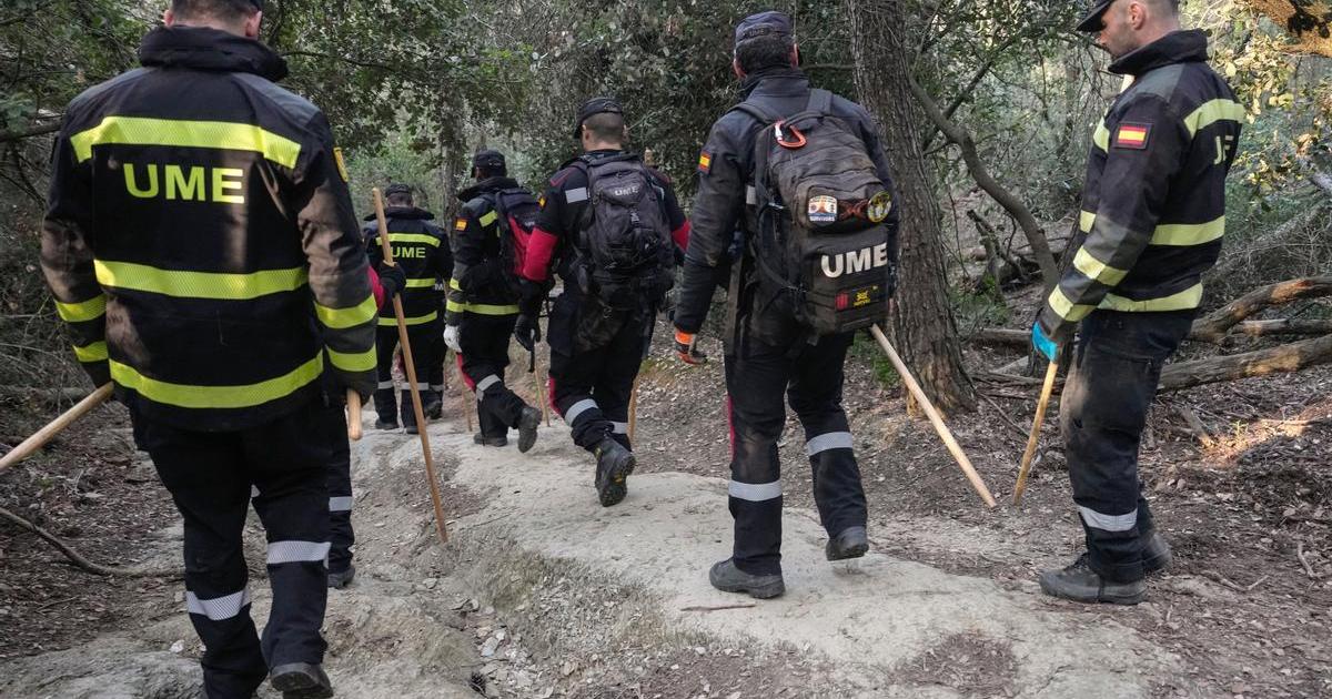 Efectivos de Agentes Rurales de la Generalitat, policías y militares de la UME siguen trabajando por cuadrículas de 300 metros cuadrados, asignadas cada una de ellas a una unidad, en una zona boscosa de un radio de 6 kilómetros del foco situado entre las autovías C-58, AP-7 y C-16.