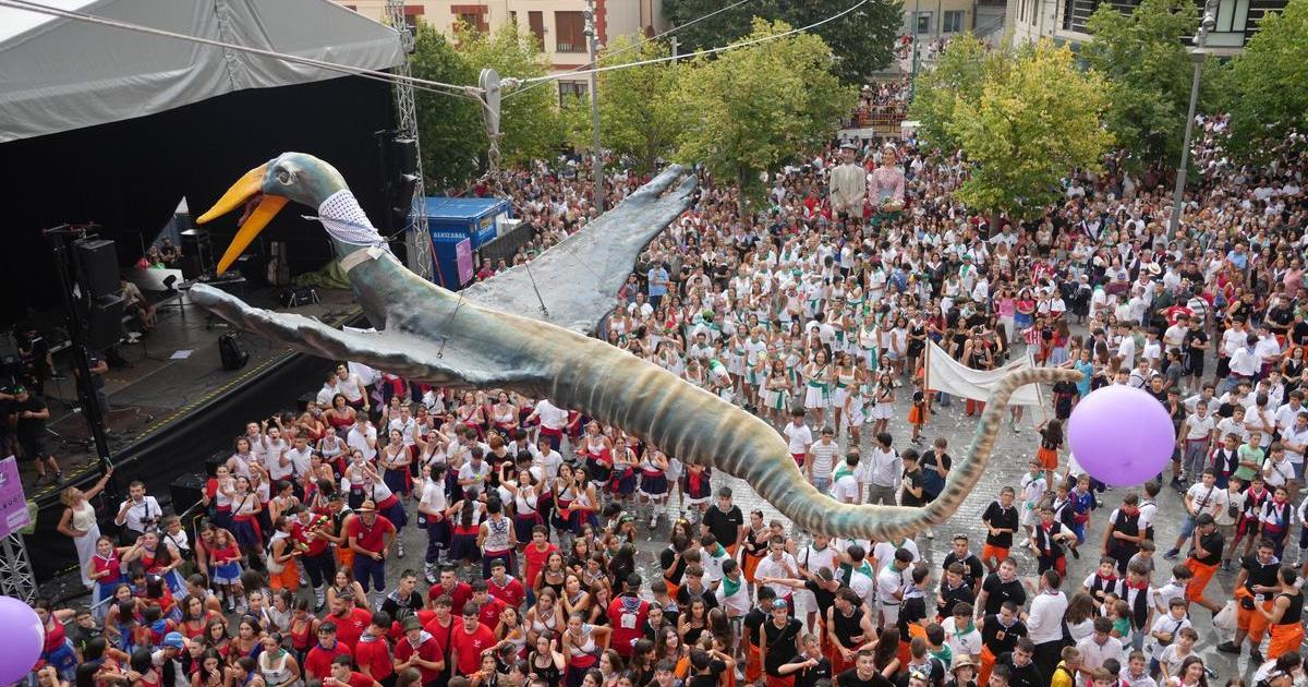 Con todo, el que ha acabado por hacer saltar toda la artillería festiva, en forma de humo de colores, confeti y enormes globos, acompañado de tronar de bombos, traineras humanas y el consabido riego de gaseosa, ha sido el estallido del cohete y la bajada del Iguarrako que, desde las alturas, vigilará los excesos de todos y todas hasta pasada la medianoche del domingo 17, cuando retorne a su guarida con su anual botín de chupetes.