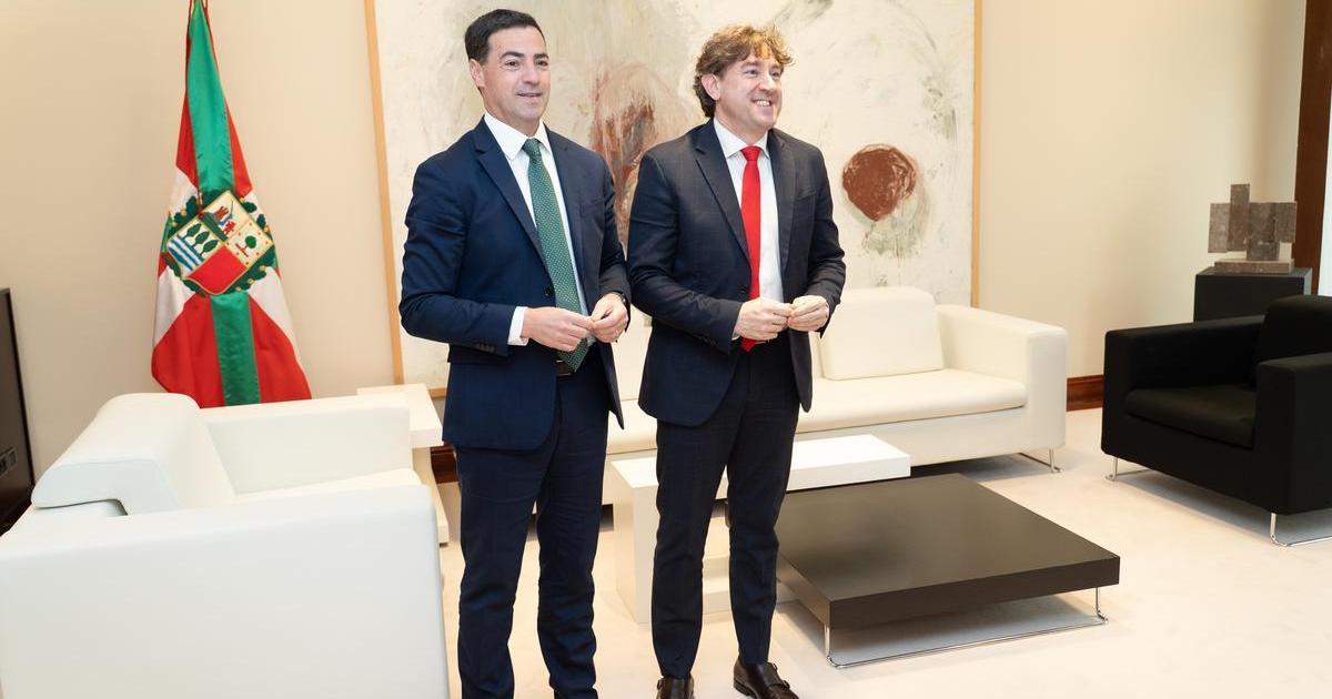 El lehendakari, Imanol Pradales, con el secretario general del PSE, Eneko Andueza, este lunes / Amaya Diaz-Emparanza/PSE