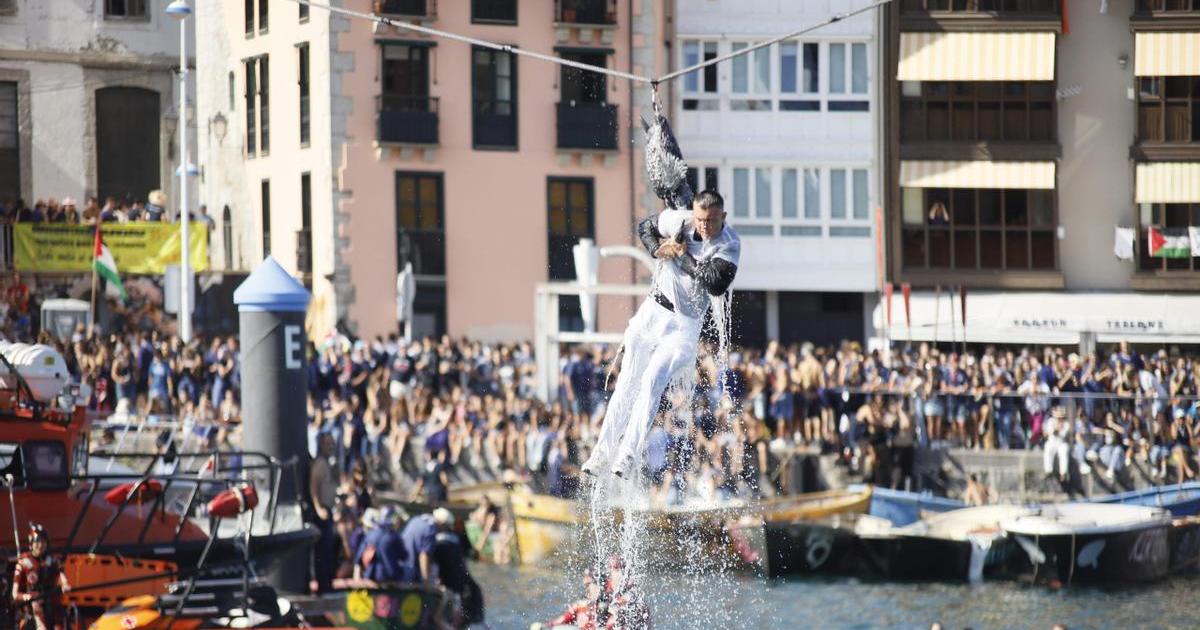 Cada cuadrilla coordina sus movimientos con precisión, mientras los harrapatzailes se colocan estratégicamente para intentar agarrar el ganso. La tensión se palpa en el ambiente y la emoción crece con cada intento, mientras los barcos avanzan y se balancean sobre el agua, hasta que ha llegado Arnaitz, de la embarcación Trankulo, dejando estupefacto al público con diez alzadas, dos más que otro harrapatzaile, Aner, de la embarcación Aitxitxa Modesto, mientras que Ekain Elorza, a bordo del Sankalope, también ha cautivado a los presentes con siete alzadas, superando en dos subidas la marca que hasta entonces había logrado la participante Maite Txakartegi.