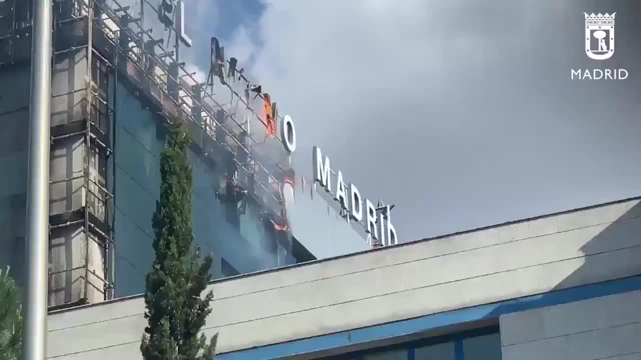 Parte de la fachada del hotel Nuevo Madrid ha comenzado a arder a media tarde de este jueves, provocando una impresionante columna de humo y fuego visible desde varios puntos de Madrid, aunque no hay heridos, han informado a Europa Press fuentes policiales.