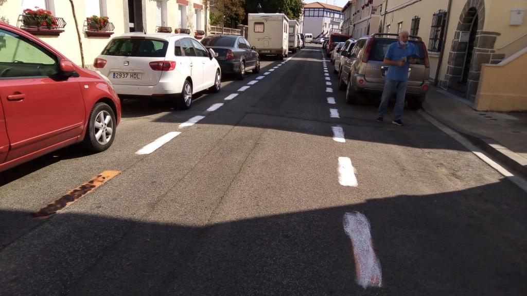 Rayas blancas pintadas en otro tramo de la calle Beriáin.