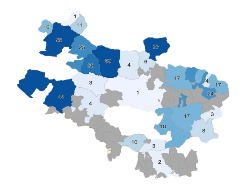 Los municipios más afectados a día de hoy son Aramaio (77), Aiara/Ayala ( 53), Gaubea/Valdegovía (41), Zuia (39) y Urkabustaiz (30).