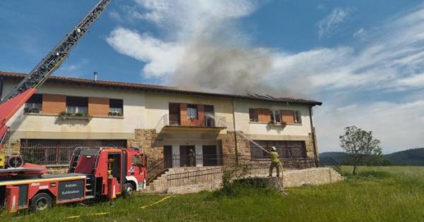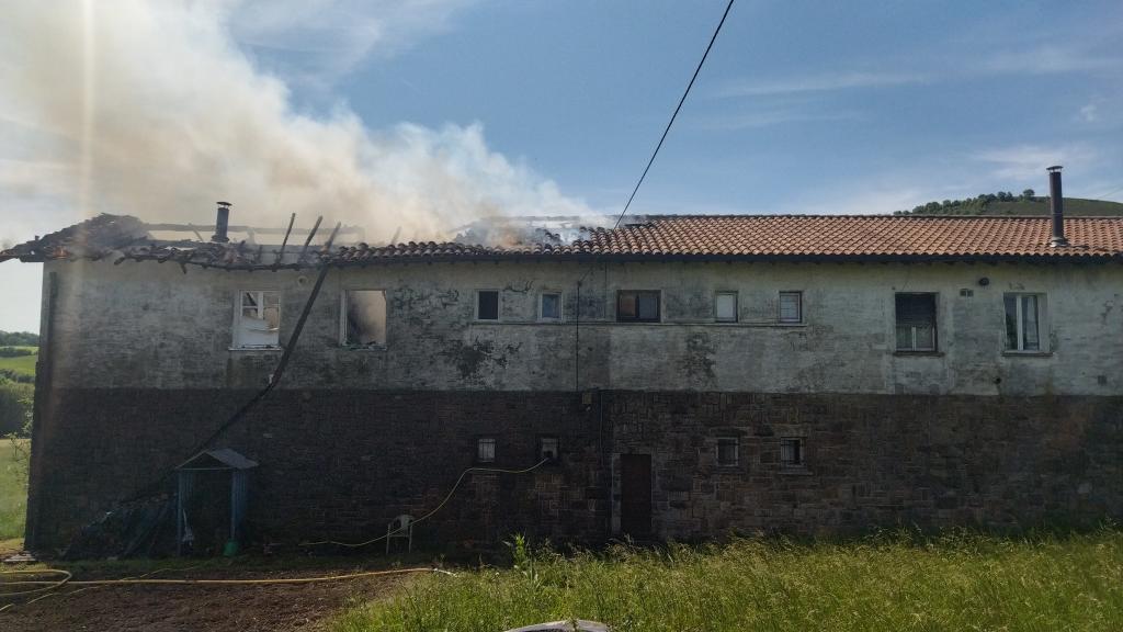 El edificio, en su día las antiguas escuelas, alberga en la actualidad a dos familias, que no han sufrido daños personales pero sí cuantiosos daños materiales a consecuencias de las llamas.