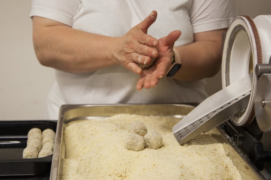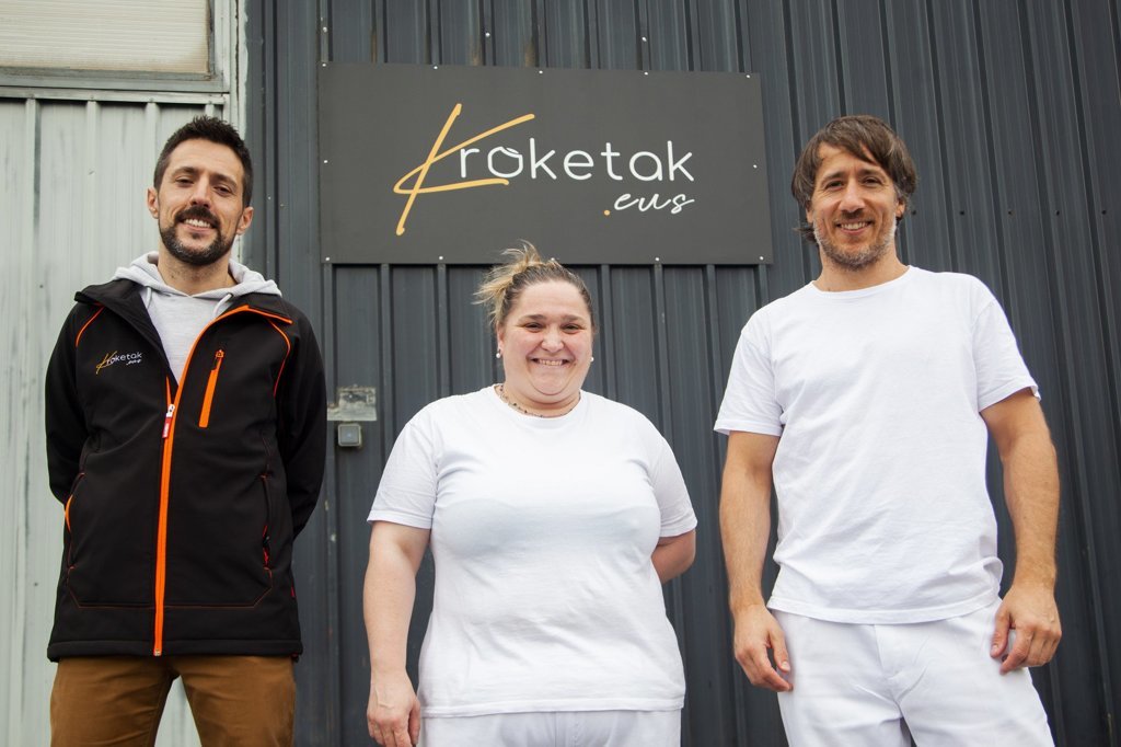 Se amasan con mimo, ya sea a mano, para darlas la forma más adecuada o en el cuececremas, para que la besamel alcance una textura cremosa perfecta porque los dos socios de Kroketak.eus, el cocinero Juan Gil y el emprendedor Patxi Ruiz de Samaniego, quieren que sus croquetas sean finas, "nada de mazacotes", con sabor intenso y único.