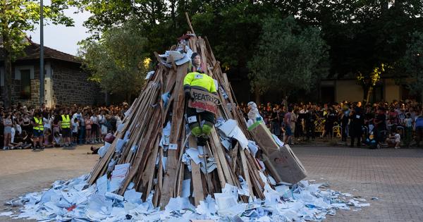 La hoguera de Judimendi con el muñeco con al cara de Beatriz Artolazabal.