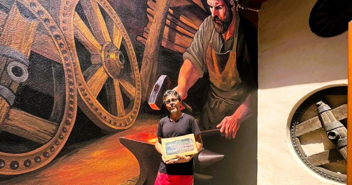 La villa medieval de Artziniega ya cuenta con nuevo atractivo turístico. Y es que toda persona que se acerque a visitar la fragua en activo de Pablo Respaldiza, ubicada en la calle Barrenkale de su casco histórico, se va a encontrar con un espectacular mural homenaje a este ancestral oficio, plasmado en la fachada del edificio colindante en su lado izquierdo.