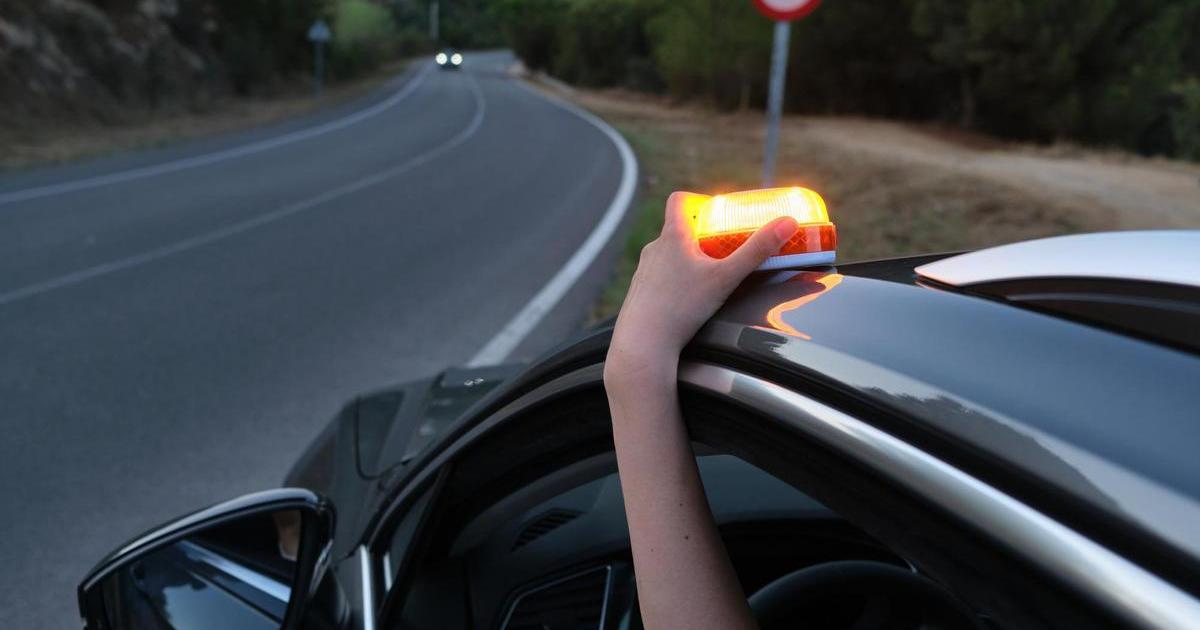 Una persona coloca una luz de emergencia en el techo de un vehículo.