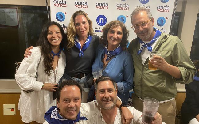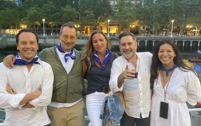 El evento, amenizado con música y con la degustación de un sabroso menú Eusko Label de la mano de los productores locales que apuestan por la filosofía KM0, reunió a oyentes y clientes de Onda Vasca. A pesar de que las previsiones meteorológicas no eran las mejores, el barco 'Ibai Alai' se llenó hasta la bandera para disfrutar de una noche de fiestas diferente. Gotzon Muneta, gerente de Onda Vasca; Teresa Martín, directora de negocio; y, Paola Barrenetxea y Sergio Corino, comerciales de Onda Vasca; fueron los encargados de recibir a los casi ochenta invitados al barco donde disfrutaron de los fuegos artificiales en compañía de periodistas de la radio como Txema Gutiérrez, José Manuel Monje y Cristina Zúñiga.