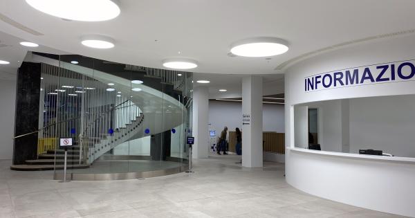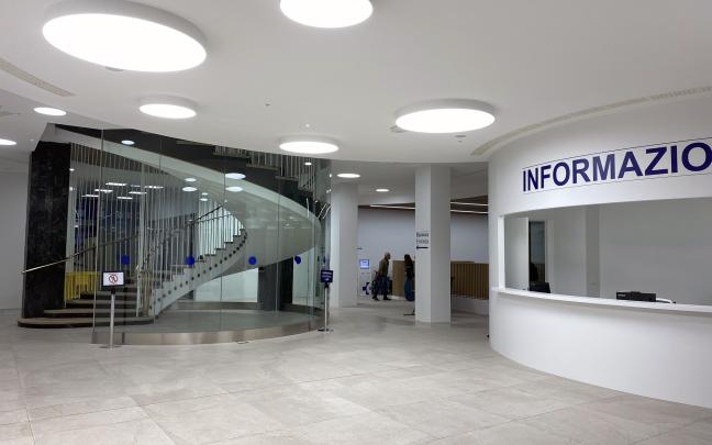 Por su parte, el reformado puesto de información recibe a las personas en un vestíbulo de 250 m2 en la entrada del hospital, integrado en un espacio semicircular que anticipa la restaurada y singular escalera circular del Hospital. Además, se ha restaurado el porche exterior cubierto y se han renovado las puertas de acceso sin alterar el aspecto exterior del edificio.