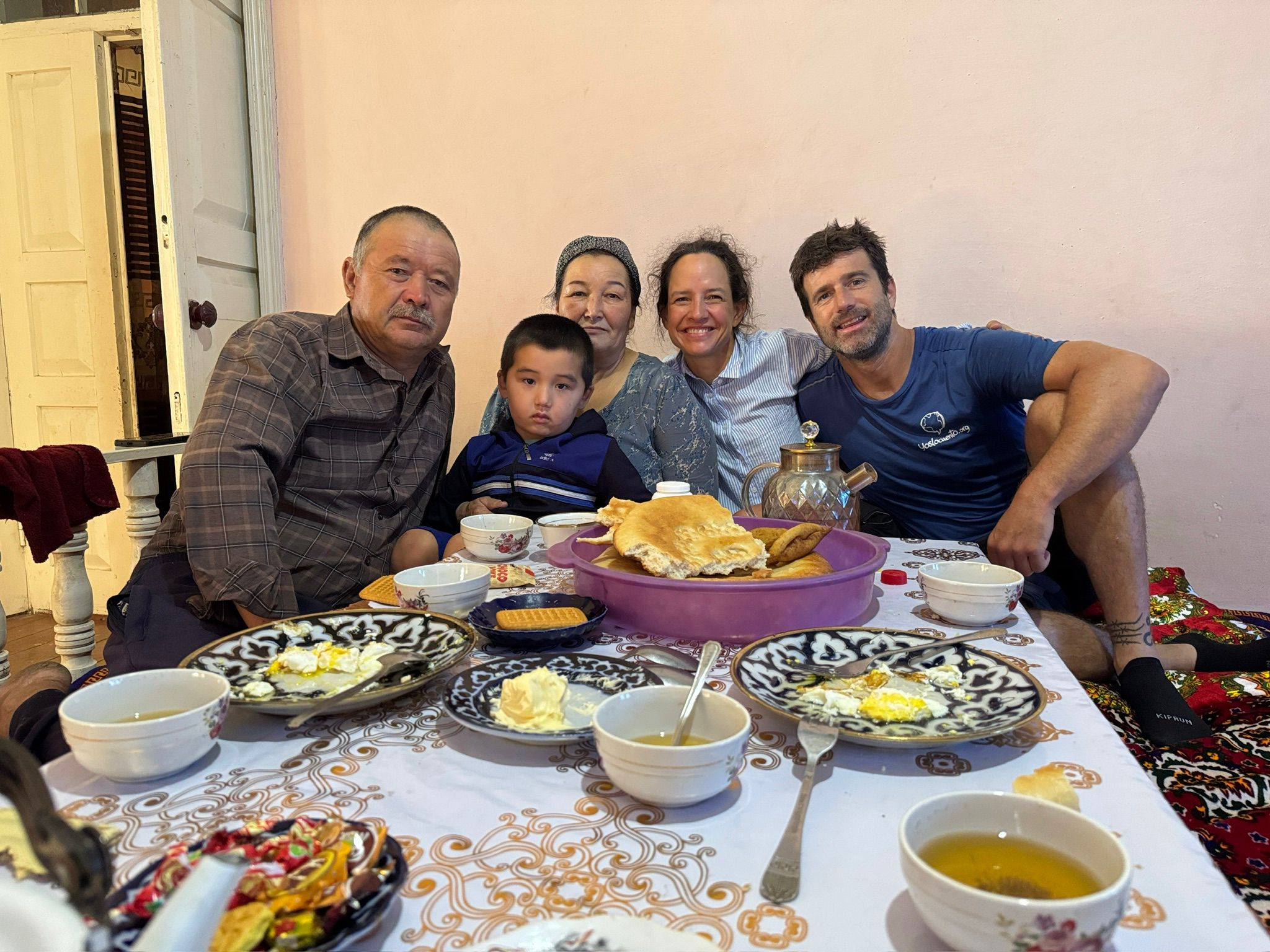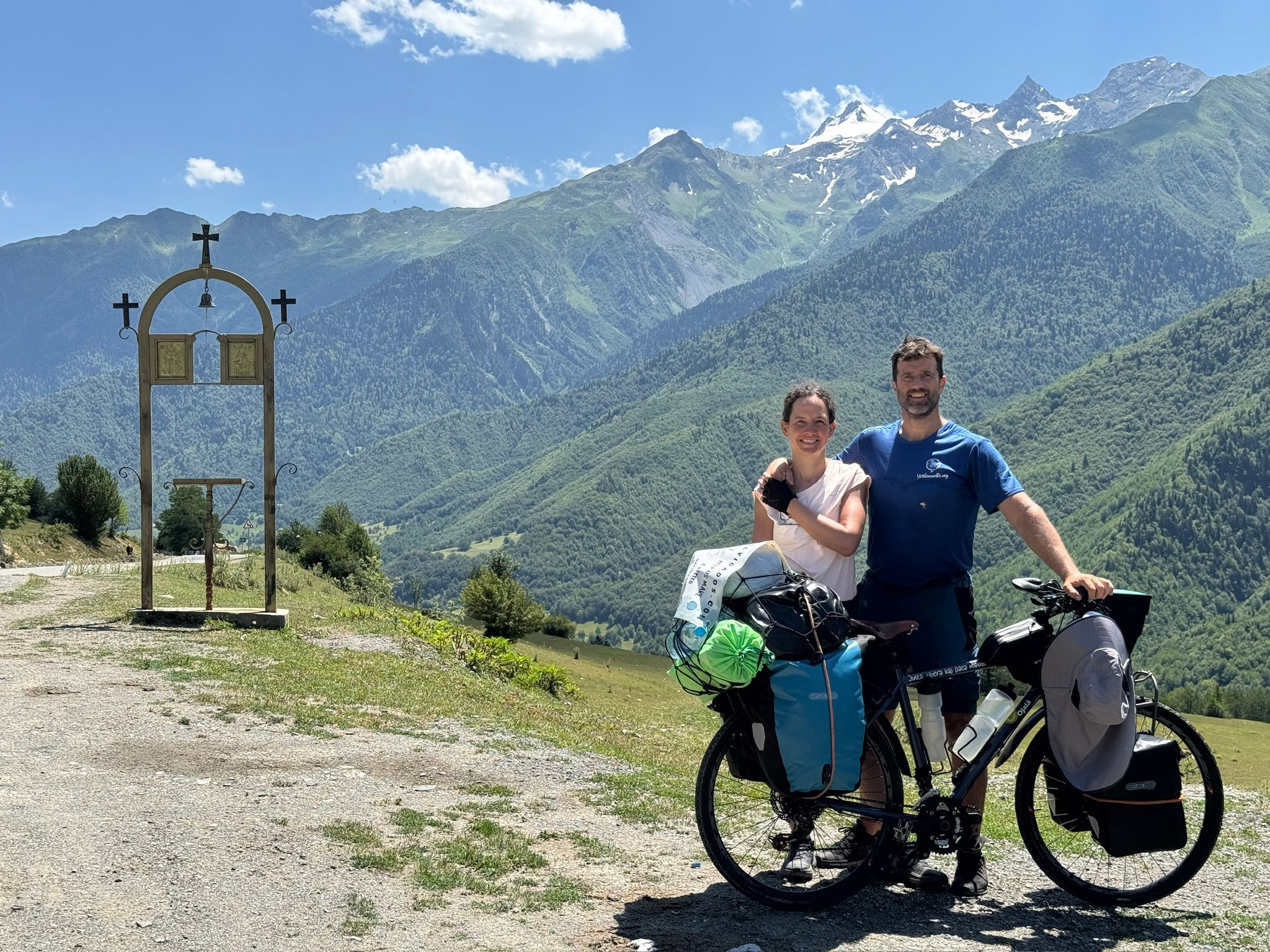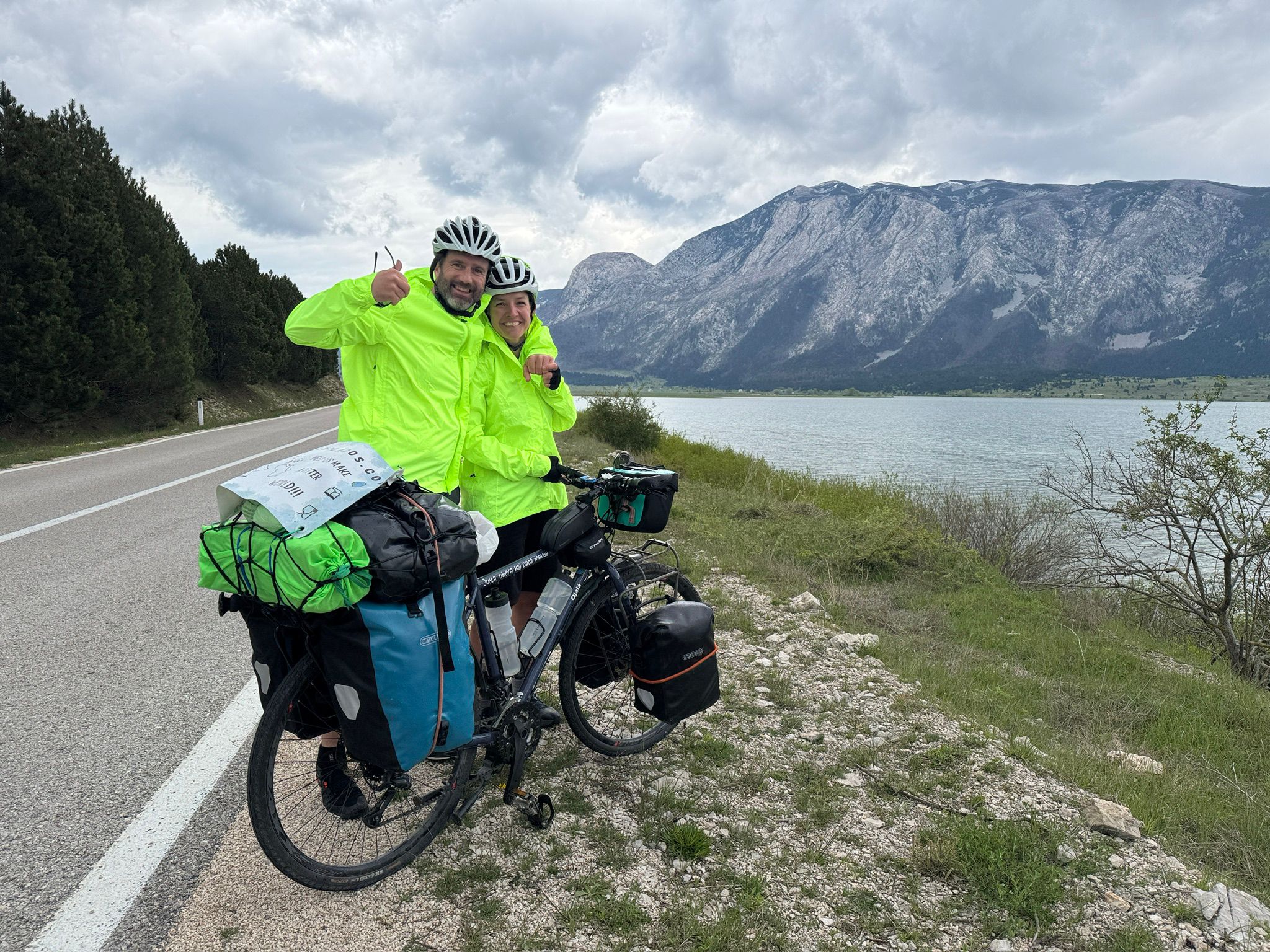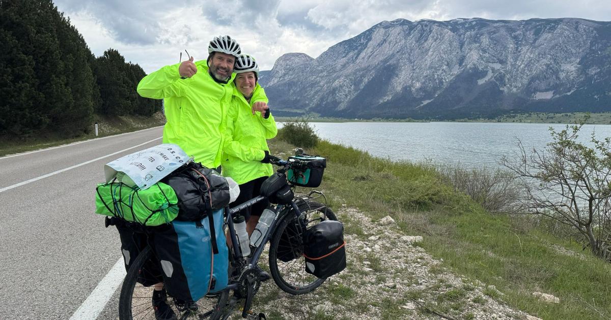 Año y medio en bicicleta para impulsar cinco acciones solidarias por todo el mundo. Es el proyecto solidario en el que están inmersos los navarros Xabier Luna y Sheila Sevillano, que en abril comenzaron un viaje que les llevará por 41 países de los cinco continentes. Casi cinco meses después del comienzo de la aventura, nos han atendido en Onda Vasca con Txema Gutiérrez desde su primera gran parada: Tayikistán. Allí han contribuido a la reforma de un centro sanitario de una zona rural donde se forma a personal de la Cruz Roja y han ayudado también en la construcción de un depósito de agua para garantizar el suministro, dado que hay cortes en la zona. En esta galería de imágenes puedes ver algunas etapas de su aventura hasta ahora.