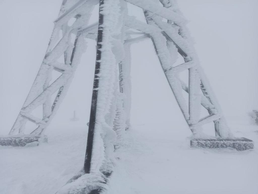 "Los valientes del grupo de tiempo libre Azterlariak han subido al Gorbea esta mañana. Así estaba la cruz. Nieve, pero, sobre todo, mucho hielo que hacían imprescindible el uso de crampones. 3°C a 800 metros", explica en redes sociales la cuenta Arabamet, dedicada a la divulgación de información meteorológica de Álava.