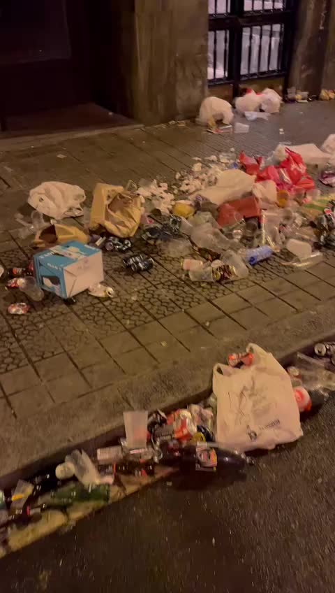 Una vez finalizado el encuentro muchos corrieron a celebrar el pase y otros muchos a ahogar las penas como podían. Viendo las aceras de la calle Licenciado Poza (Pozas) lo que nos queda claro es que se olvidaron de celebrar o de resignarse, según la afición, sin ensuciar.