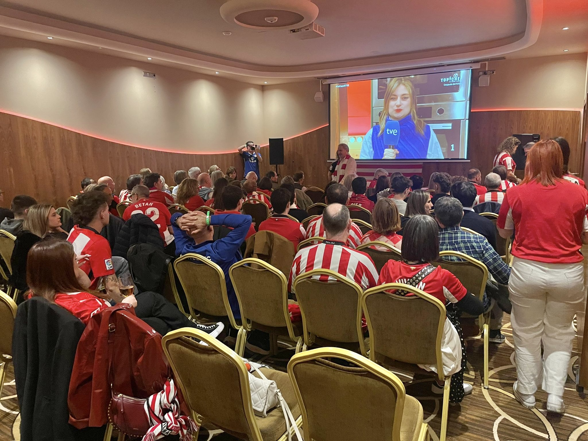 ONDA VASCA ha reunido a más de un centenar de aficionados del Athletic Club en el Luckia Casino Bilbao para vivir con hinchas rojiblancos, y en un ambiente exclusivo, el encuentro de vuelta de la semifinal de la Copa ante la Real Sociedad disputada en Anoeta.