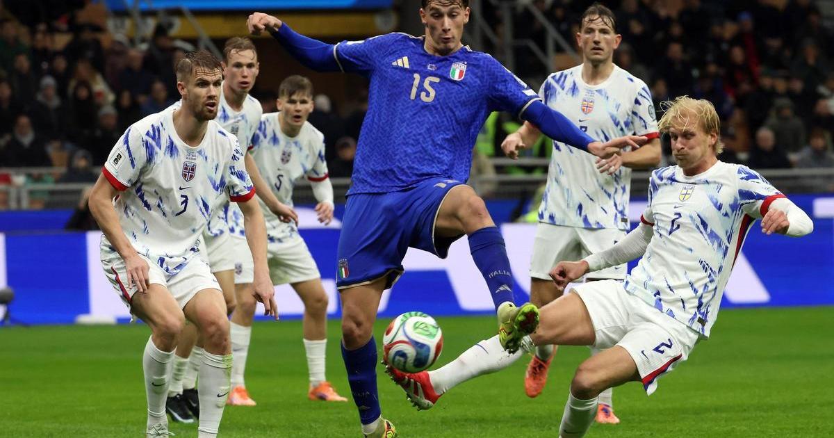 Imagen del encuentro disputado entre Italia y Noruega, que dejó a los italianos en la repesca y a los noruegos clasificados para el Mundial. / EFE