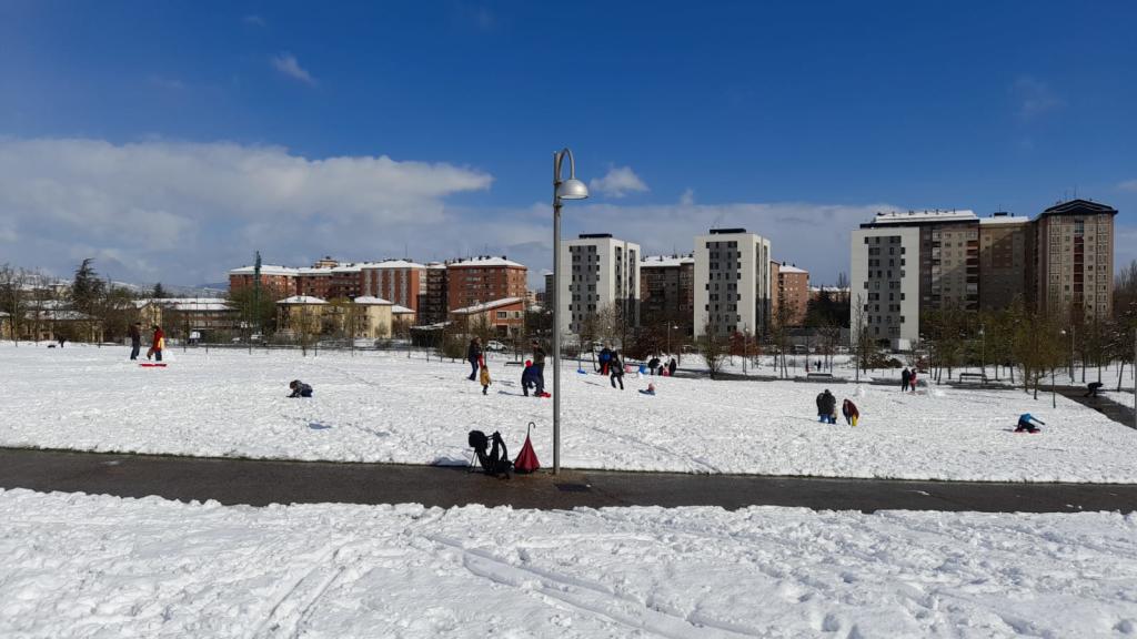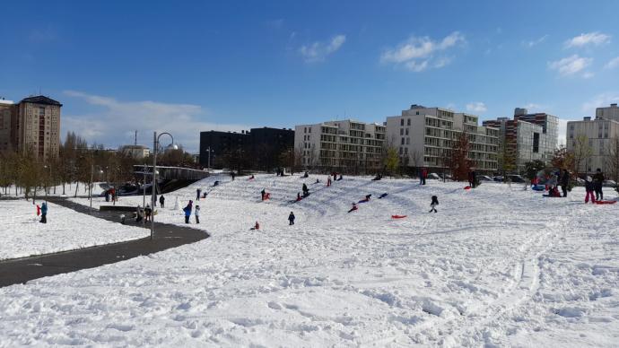 Al ver la ciudad nevada, no lo han dudado ni un minuto en volver a ponerse el pantalón de la nieve, los guantes, los gorros y las botas para disfrutar de parques nevados en barrios como Borinbizkarra, Salburua y Zabalgana.